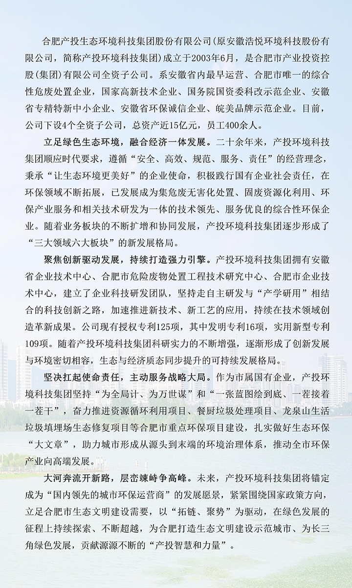 COPYRIGHT © 2020 合肥产投生态环境科技集团股份有限公司 网站建设:中企动力 合肥